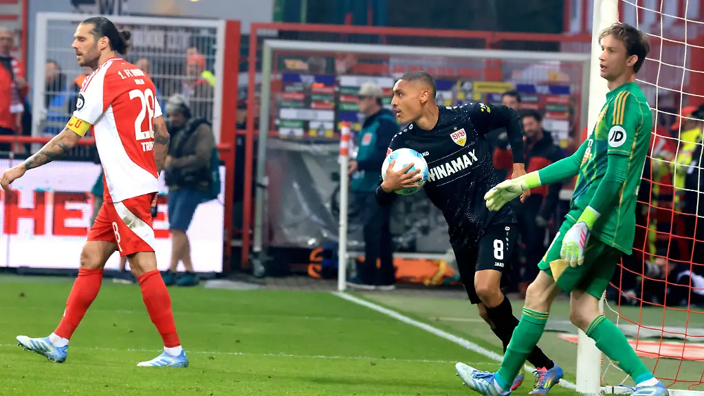 Andrej Ilić (5./45.+6), Diogo Leite (19.) und Leopold Querfeld (38.) trafen für Union, der zuletzt kriselnde Nationalstürmer Deniz Undav (23.), Enzo Millot (29.), Jeff Chabot (43.) und Chris Führich (45.+1) waren für DFB-Pokalfinalisten aus Stuttgart erfolgreich. Vier Spieltage vor Schluss steht Union 13 Punkte vor dem Relegationsrang - und spielt auch in der kommenden Saison erstklassig. Für den VfB ist das europäische Geschäft sechs Zähler entfernt.
