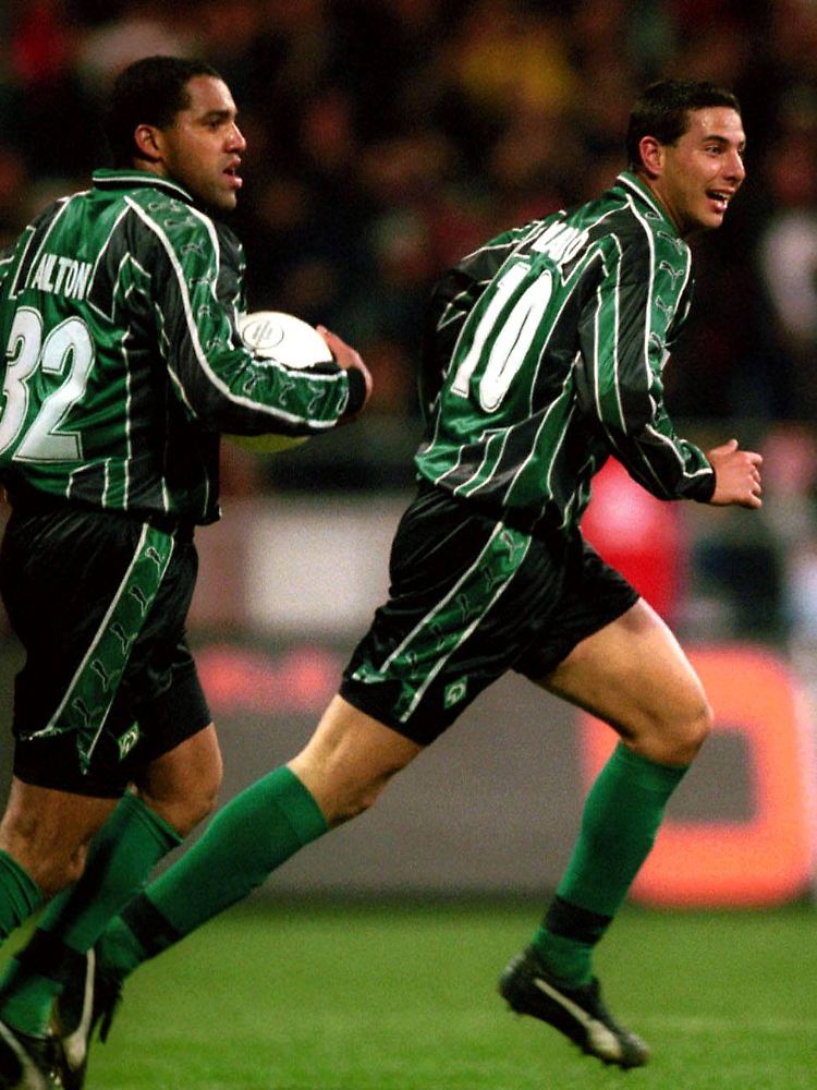 Zwar gewann Pizarro mit Werder nie eine Meisterschaft, aber seine "Fresse, die da lacht" gab Bremen so viel mehr. Und eine Hand am letzten Ligatitel der Bremer hatte er trotz allem. Ohne den Peruaner hätte sein kongenialer Sturmkollege Ailton den Klub 1999 verlassen, weil er unter Schaaf-Vorgänger Felix Magath nur auf der Bank schmorte. Und ohne Ailtons Tore wäre Bremen in der Saison 2003/04 niemals Meister geworden. Mit dem Brasilianer baute Pizarro eine Verbindung auf - nicht nur auf dem Platz. Beide gingen gerne gemeinsam essen, bestellten aufgrund von mangelnden Deutschkenntnissen meist das Falsche, aber lachten drüber und aßen die Teller trotzdem leer. Und die Verbindung auf dem Rasen bekam sogar einen eigenen Namen: "Pizza-Toni" lieferte Tore am Fließband aus.
