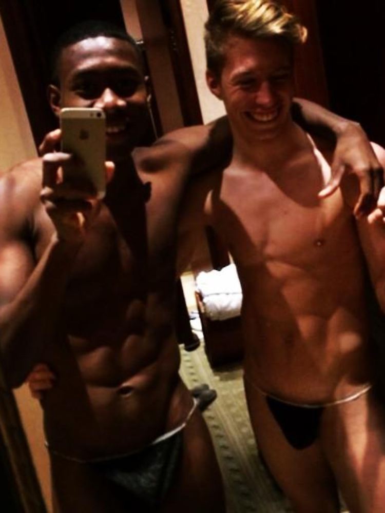 Das Bild zeigt den Fußballprofi des FC Bayern und deutschen Junioren-Nationalspieler zusammen mit seinem Kollegen David Alaba, 22 Jahre alt. Beide tragen im Grunde nichts - außer, sagen wir, sehr knapp sitzende Unterhosen. Der Hashtag #photoiwouldneverpost erklärt, was der Quatsch soll. Eben genau das: ein Spaß, ein kleiner Jokus soll es sein. Eben Fotos, die man eigentlich niemals zeigen würde. Ob das lustig ist, können wir nicht beantworten. Da fehlt der Sportredaktion die Fachkompetenz.