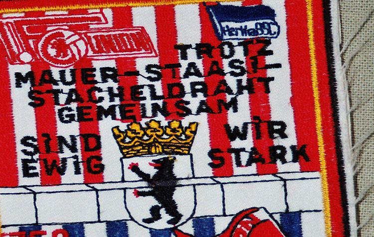 Da die Hertha-Fans den direkten Weg nach Ost-Berlin An die Alte Försterei zu Union-Heimspielen gehen konnten, war ein Zusammentreffen der sympathisierenden Fangruppen jederzeit möglich. Brisanter als ihr Besuch waren jedoch die Mitbringsel aus West-Berlin. Aufnäher mit Bekundungen wie "Wir halten zusammen, uns kann nichts trennen, keine Mauer und kein Stacheldraht!" oder Schals und Mützen, mit dem Slogan "Hertha und Union - eine Nation" gingen nur verdeckt von Hand zu Hand. Dieser politisch brisante Markt gesamtdeutscher Fanutensilien und die im Schutze der Fankurve zur Schau gestellte Verbrüderung waren dem MfS längst ein Dorn im Auge. Bis dahin war es der Stasi lediglich beim Intertoto-Cup-Spiel der Herthaner bei Slovan Bratislava 1977 und in Dresden 1978 gelungen, mehrere Union-Anhänger auszumachen, die Kleidungsstücke, Aufnäher und Fahnen von Hertha BSC trugen und Sprechchöre für die West-Berliner Mannschaft anstimmten. Die Union-Fans hatten das Schlupfloch von internationalen Begegnungen im Ostblock oder der Sportkalender-Spiele in der DDR geschickt genutzt, um der Mannschaft und den Fans von Hertha BSC näher zu kommen. Trotz der ersten "erkennungsdienstlichen" Erfolge des MfS im Union-Anhang, konnte das MfS das einigende Band des Fußballs nicht zerschlagen. Die Verbundenheit der beiden Fangruppen nahm weiterhin nicht ab.