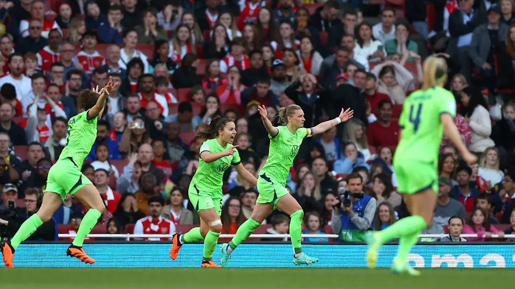 Die Fußballerinnen des VfL Wolfsburg haben das Emirates Stadium verstummen lassen und das Champions-League-Finale erreicht. Der deutsche Double-Gewinner siegte vor der englischen Rekordkulisse von 60.063 Fans im Halbfinal-Krimi beim FC Arsenal 3:2 nach Verlängerung. Nach regulärer Spielzeit hatte es 2:2 (1:1) gestanden. Die Wolfsburgerinnen greifen im Endspiel am 3. Juni in Eindhoven nach ihrem dritten Titel in der Königsklasse. Gegner ist dann der FC Barcelona.