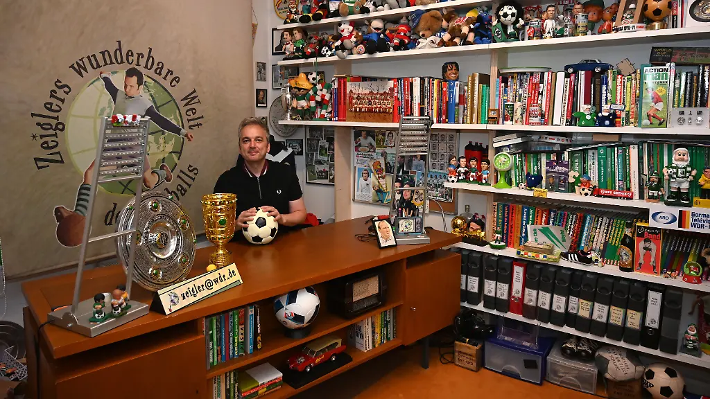 Die Sendung ist nicht gewöhnlich: Das Studio ist im Erdgeschoss seiner Wohnung und erinnert an das mit Fußball-Fanartikeln vollgepackte Kinderzimmer eines Erwachsenen, der nicht groß werden wollte. "Mein ganzes Leben besteht aus Hobbys", schwärmt der 57-Jährige. Neben der Fernsehkarriere produziert er einen Podcast, moderiert im Radio und tritt mit seiner Tour "Hat schon Gelb!" auf der Bühne auf. Begleitet man ihn in sein Fußball-Reich, steht man im Museum eines Fußball-Nerds: An den Wänden hängen Trikots, vom Regal baumeln Maskottchen von Bundesliga-Klubs. Zeigler besitzt eine riesige Sammlung von Sammelheften und Fußball-Chroniken.