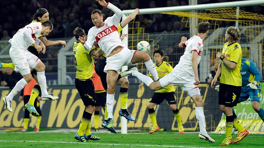 Tabellenführer Borussia Dortmund hat im Titelduell mit dem FC Bayern München zwei Punkte liegen gelassen. In einem völlig verrückten Bundesliga-Spiel mussten sich die Westfalen zum Auftakt des 28. Spieltags mit einem 4:4 (1:0) gegen den VfB Stuttgart zufriedengeben. Christian Gentner entriss dem BVB mit seinem Ausgleichstor in der Nachspielzeit den Sieg. Mats Hummels (81.) und Ivan Perisic (87.) hatten den BVB nach dem 2:3-Rückstand wieder auf Kurs gebracht. Nach Toren von Vedad Ibisevic (71.) und Julian Schieber (77./79.) standen die Schwaben dicht vor einer Sensation. Shinji Kagawa (33.) mit seinem zwölften Saisontor und Jakub Blaszczykowski (49.) hatten die Dortmunder vor 80.720 Zuschauern 2:0 in Führung gebracht.