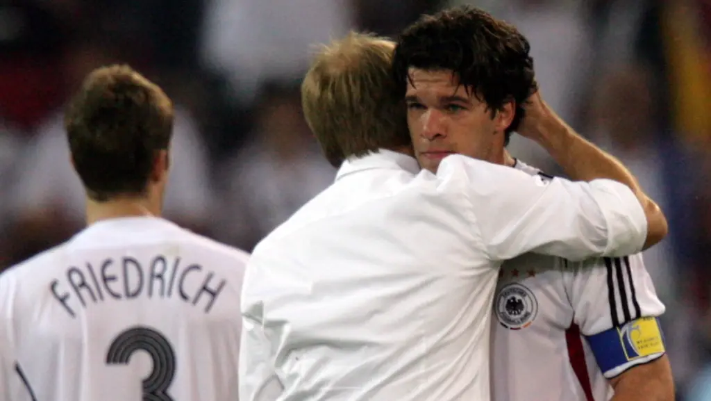 Das Ballack'sche Final-Trauma setzte sich allerdings fort. Bei der Heim-WM 2006 wurde der Einzug ins Sommermärchen-Endspiel gegen Italien (0:2 n.V.) in letzter Sekunde verspielt, 2008 bei der EM war Spanien (0:1) übermächtig und Ballack so gefrustet, dass er sich noch auf dem Rasen zu einem verbalen Disput mit Teammanager Oliver Bierhoff hinreißen ließ. Die Episode ging als Wink-Elemente-Streit in die deutsche Fußballgeschichte ein.