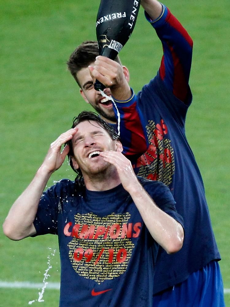 Sektdusche für Lionel Messi. Der Argentinier war mit 34 Saisontoren der beste Torjäger in Spanien.