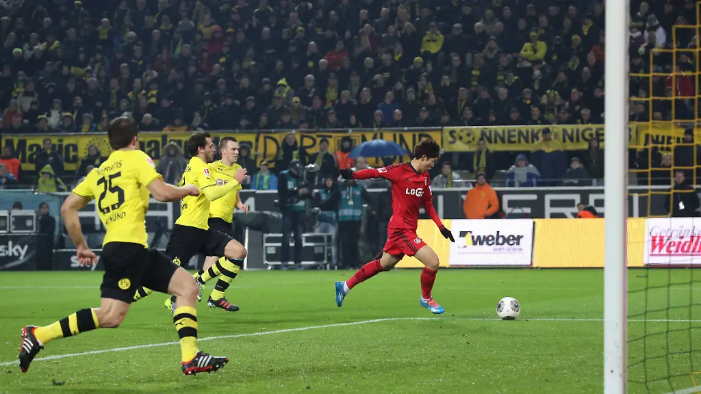 Heung Min Son mit seinem siebten Saisontreffer (18.) machten die zweite Heimniederlage der Dortmunder hintereinander ohne eigenen Treffer perfekt. Zuletzt hatte der BVB zu Hause gegen die Bayern mit 0:3 den Kürzeren gezogen. Angeschlagen geht Dortmund nunmehr in das Gruppen-"Endspiel" in der Champions League bei Olympique Marseille. Die Rote Karte gegen Emir Spahic wegen einer Tätlichkeit (80.) sorgte beim Bayer-Erfolg für den Wermutstropfen. Beim BVB sah Sokratis in der Nachspielzeit (90.+2) noch die Gelb-Rote Karte.