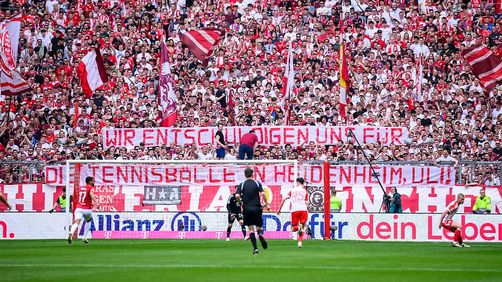 Nun konterten die angesprochenen Fans - und nahmen Hoeneß auf die Schippe: Beim 2:0-Heimsieg des Rekordmeisters zeigten sie hinter dem Tor ein Banner, auf dem zu lesen war: "Wir entschuldigen uns für die Tennisbälle in Heidenheim, Uli!". Eine Anspielung auf die 2:3-Blamage vom vergangenen Wochenende in Heidenheim. Da waren allerdings gar keine Tennisbälle geflogen, trotzdem verspielte Thomas Tuchels Mannschaft erstmals in der Klubgeschichte einen 2:0-Vorsprung gegen einen Aufsteiger.