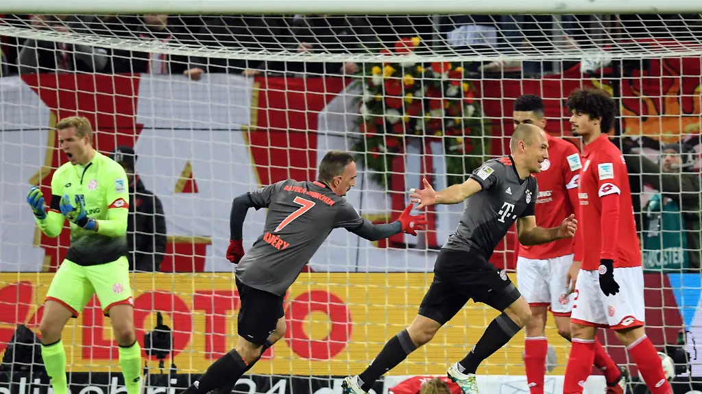 Robert Lewandowski (8., 90.+1) und Arjen Roben (21.) in seinem 150. Bundesliga-Spiel trafen für den Meister, der aber im achten Pflichtspiel in Folge ein Gegentor hinnehmen musste. FSV-Stürmer Jhon Cordoba erzielte nach einer erneuten Unachtsamkeit der Bayern bereits in der vierten Minute die Mainzer Führung. Eine solche Negativserie hatte es zuletzt vor fünf Jahren gegeben.