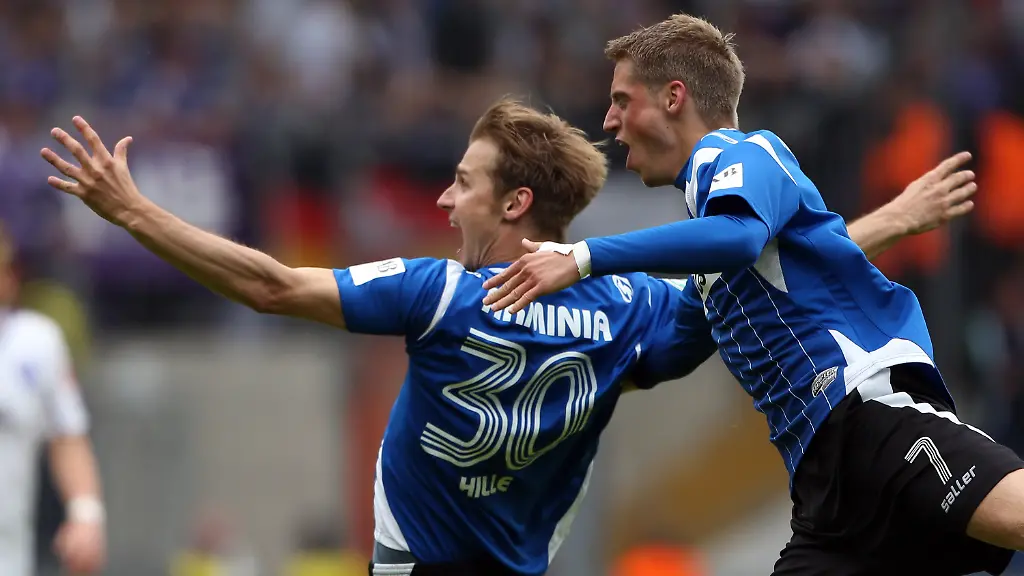 Mann des Tages vor 26.500 Zuschauern auf der ausverkauften Bielefelder Alm war Sebastian Hille, der in der 55. Minute das Aufstiegs-Tor köpfte. Schon vor Anpfiff war klar: Ein Sieg im prickelnden Derby reicht der Arminia, um zwei Jahre nach dem Abstieg in die 2. Liga zurückzukehren. Doch auf der Alm entwickelte sich ein ebenso spannendes wie zähes Spiel, das erst der gefeierte Hille entschied. Trainer Stefan Krämer muss nun eine Wette einlösen und sich das Arminia-Wappen tätowieren lassen.