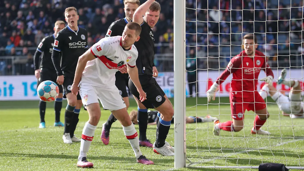 Es läuft bereits die Nachspielzeit des Abstiegsduells zwischen Arminia Bielefeld und dem VfB Stuttgart, als das Ergebnis nebensächlich wird: Bei einem Zusammenprall verletzt sich Bielefelds Fabian Klos am Kopf. Der Stürmer befindet sich im Krankenhaus.