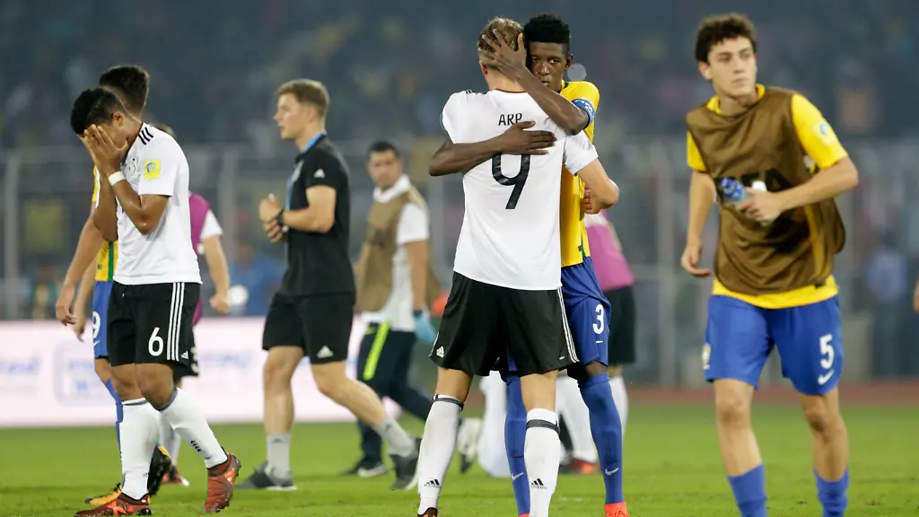 Der Traum vom Titel ist geplatzt: Die deutschen U17-Fußballer sind bei der WM in Indien im Viertelfinale nach großem Kampf und starker Leistung mit 1:2 (1:0) an Brasilien gescheitert. Im Glutofen von Kolkata hatte Kapitän Jan-Fiete Arp vom Hamburger SV sein DFB-Team vor 66.600 Zuschauern mit seinem fünften Turnier-Treffer (21./Foulelfmeter) in Führung geschossen, ehe in der Schlussphase die Kräfte schwanden.