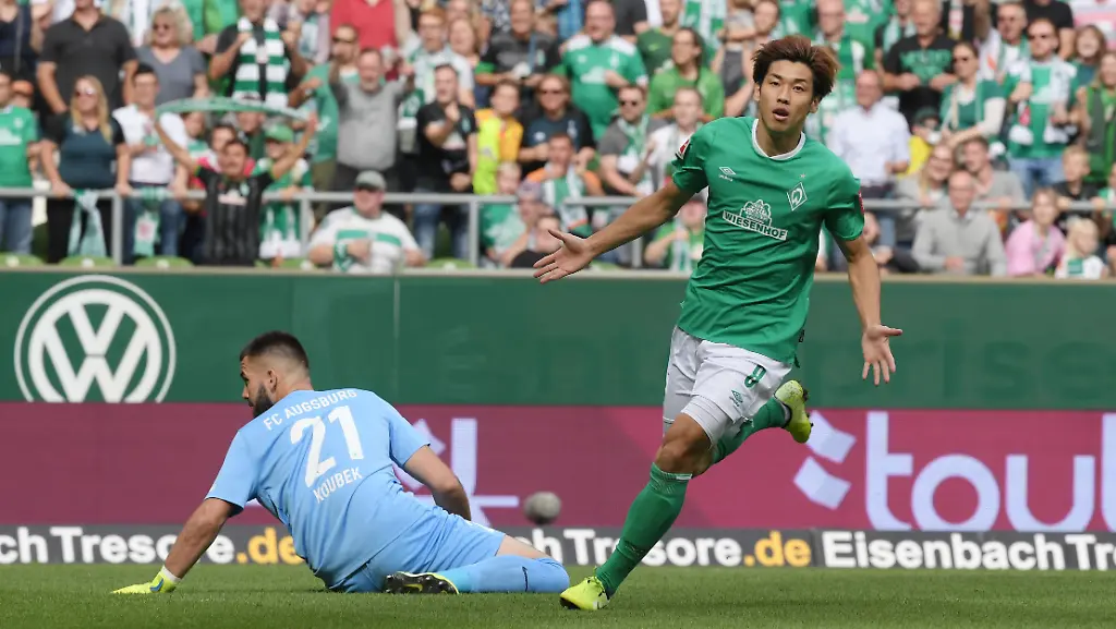 "Diese Null da, die nervt mich", hatte Bremens Coach Kohfeldt vor der Partie gesagt, sie sorge für Frustration: "Wir wollen so nicht in die Länderspielpause gehen." Mit genau dieser Entschlossenheit starteten die Grün-Weißen ins Spiel. Es dauerte exakt fünf Minuten, bis die Werder-Fans erstmals jubeln durften. Niclas Füllkrug chippte den Ball gefühlvoll in den Lauf von Osako, der im Duell gegen FCA-Keeper Tomas Koubek cool blieb und aus 16 Metern flach einschob.