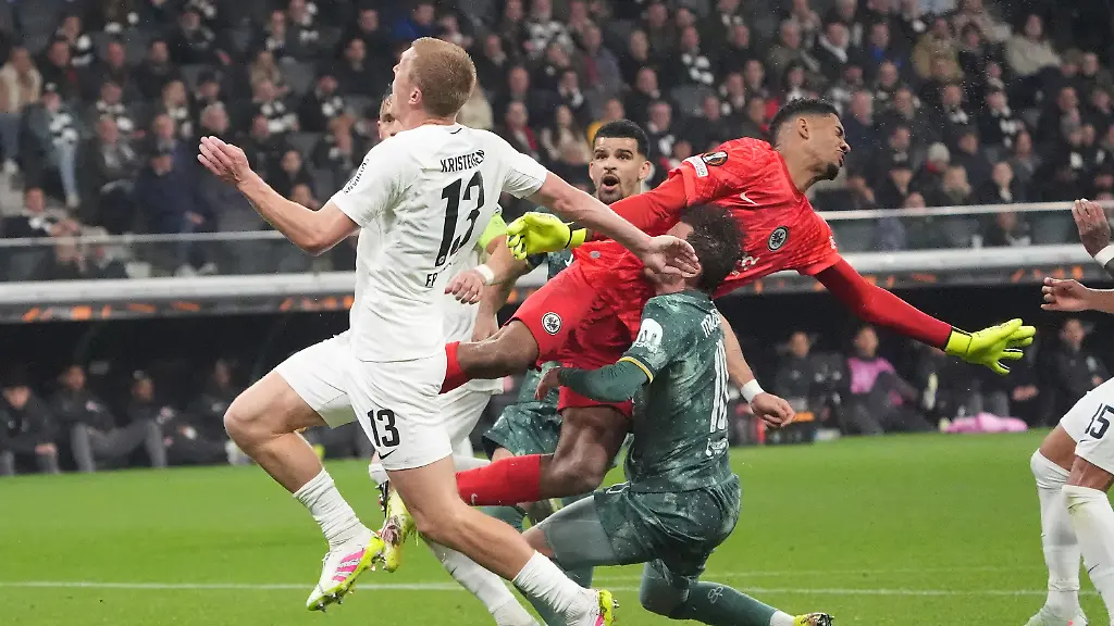Beim größten Aufreger stand abermals der Torwart im Mittelpunkt: Im Duell mit Tottenhams James Maddison räumte er den Engländer voll ab, berührte den Ball aber leicht. Beide wurden behandelt, Schiedsrichter Davide Massa sah sich derweil die Bilder an und entschied auf Strafstoß. Solanke traf souverän. Doch Frankfurt drückte weiter, ein Freistoß von Chaibi (51.) rauschte ebenso wie ein Kopfball von Rasmus Kristensen knapp vorbei. Die Spurs setzten immer wieder Akzente und hatten durch Cristian Romeros Kopfball (61.) die beste Möglichkeit zu erhöhen. Dann vergab Kristensen die große Chance zum Ausgleich (82.).