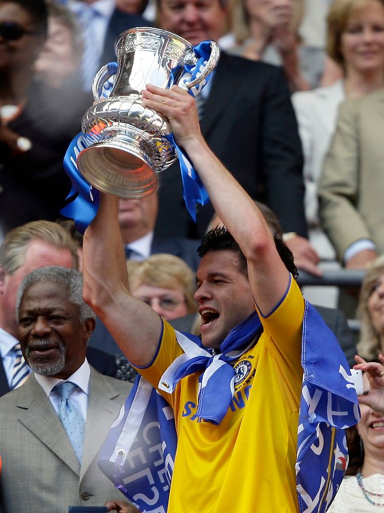 Der DFB-Kapitän, der bei Chelseas bis dato letztem FA-Cup-Sieg vor zwei Jahren wegen einer Fußverletzung zum Zuschauen verdammt war und vergangenes Jahr beim verlorenen Liga-Pokal-Finale ebenfalls erst später eingewechselt worden war, feierte seinen dritten Titelerfolg auf der Insel. Allerdings kam er erst in der 61. Minute in die Partie. Ballacks Clubkamerad, Nationalverteidiger Ashley Cole, gewann derweil als erster Spieler in über 100 Jahren den Pokal zum fünften Mal.