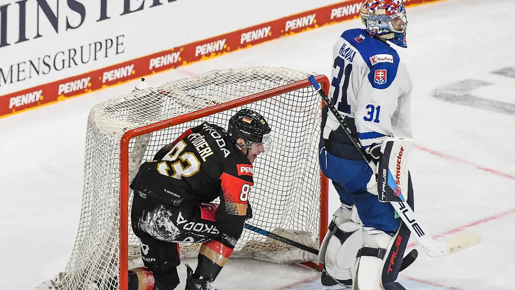 Der Eishockey-Vizeweltmeister hat den Titel-Hattrick beim Deutschland Cup geschafft. Das Tor von Berlins Leonhard Pföderl knapp fünf Minuten vor dem Ende zum 1:2 (0:1, 0:0, 1:1) gegen die Slowakei reichte am Sonntag in Landshut zum Turnier-Sieg. Das Team von Bundestrainer Harold Kreis hat im Vergleich zu den punktgleichen Slowaken und Dänemark das bessere Torverhältnis und holte damit den zehnten Pokal beim Deutschland Cup.