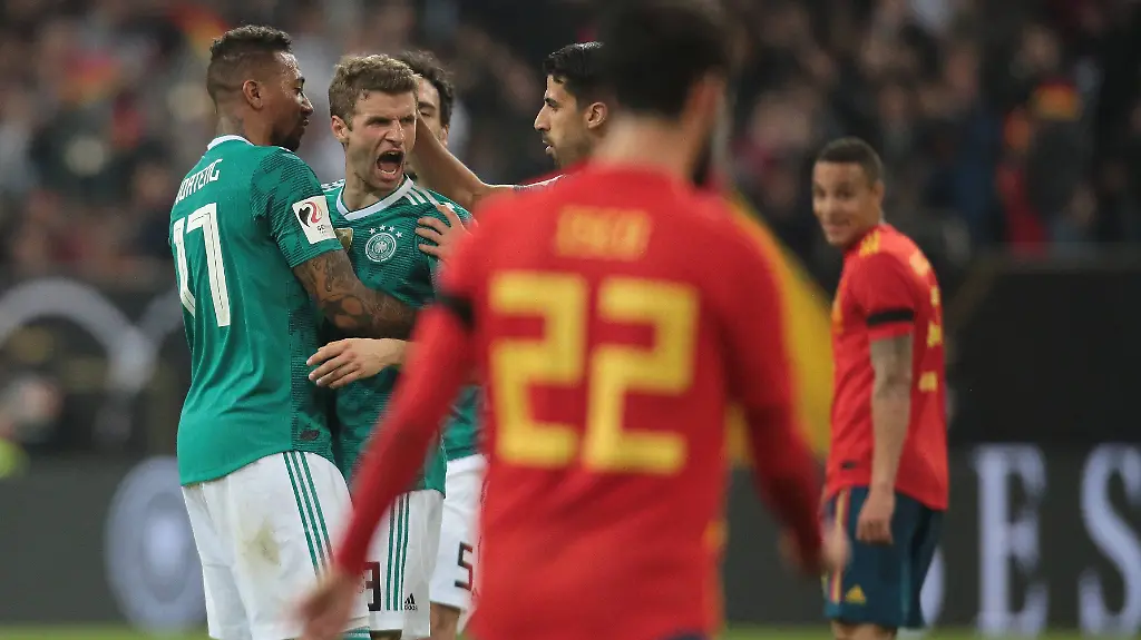 Die deutschen Weltmeister haben beim Start ins WM-Jahr gegen technisch brillante Spanier gleich erlebt, wie herausfordernd das Unternehmen Titelverteidigung wird. 86 Tage vor dem Auftaktspiel gegen Mexiko trennten sich die beiden Mitfavoriten in einem hochklassigen Härtetest in Düsseldorf mit einem leistungsgerechten 1:1 (1:1). Thomas Müller sorgte mit seinem 38. Länderspieltor in der 35. Minute dafür, dass das in der ersten halben Stunde deutlich unterlegene Team von Bundestrainer Joachim Löw seine Erfolgsserie auf 22 Partien ohne Niederlage ausbauen konnte. Rodrigo brachte die Spanier in der 6. Minute vor 50.653 Zuschauern früh in Führung.