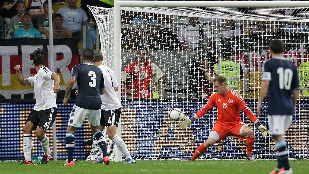 In Unterzahl mussten sich die Hausherren neu sortieren. Der wieder in die Startelf zurückgekehrte Thomas Müller hatte für ter Stegen weichen müssen. Löw gab von der Seitenlinie immer wieder Anweisungen, Klose rutschte nach Flanke von Marcel Schmelzer am 1:0 vorbei. Dann der nächste Rückschlag: Khedira lenkte einen Eckball seines Real-Madrid-Kollegen di Maria ins eigene Netz (45.+1).