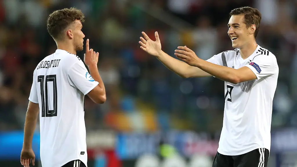Dank Torjäger Waldschmidt erreicht Deutschlands U21-Nationalmannschaft bei der Fußball-EM das Halbfinale und qualifiziert sich damit auch für Olympia. Dem DFB-Nachwuchs genügt im Gruppenfinale ein Remis gegen Österreich.