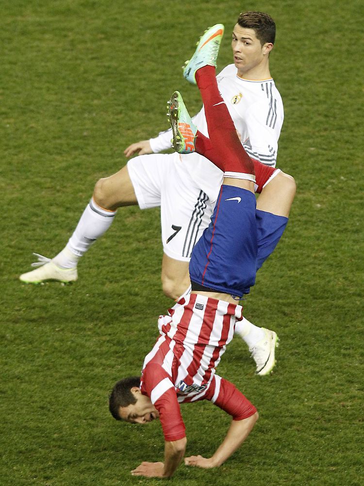 Die letzten Zweifel räumte Ronaldo aus. Mit zwei v erwandelten Foulelfmetern (6./15. Minute) schoss er Real gleich in der ersten Viertelstunde 2:0 in Führung. Fußballerisch ereignete sich danach im Calderón-Stadion kaum noch etwas. Die Partie glich einem Scheingefecht. Für Aufregung sorgten nur zwei Zwischenfälle: der Wurf eines Feuerzeugs auf Ronaldo und ein Horrorsturz des Atlético-Verteidigers Javier Manquillo.