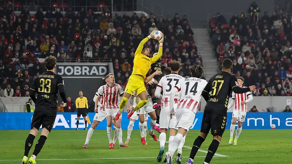 Marius Bülter zielte aus der Distanz Zentimeter zu hoch (6.), dann lenkte Rosenfelder eine Hereingabe von Linton Maina unbeholfen ins eigene Tor. Doch der Sport-Club antwortete nur 41 Sekunden später mit seinem ersten echten Angriff: Scherhant chippte nach Steckpass von Yuito Suzuki den Ball leicht abgefälscht über Marvin Schwäbe. In Folge stabilisierten sich die Breisgauer, die Teams neutralisierten sich nun weitgehend im Mittelfeld.