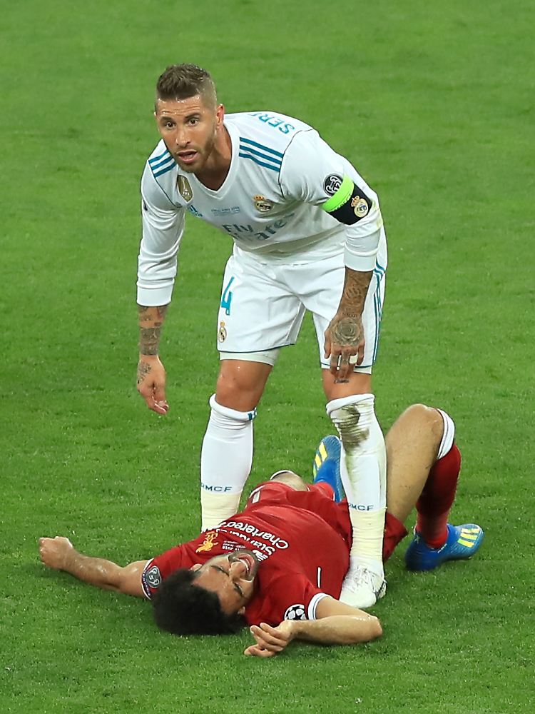 Sergio Ramos (links) riss im CL-Finale 2018 Mohamed Salah zu Boden.