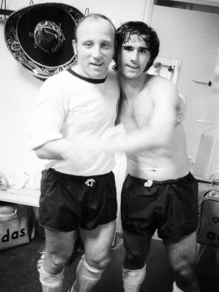 Sie mögen sich: Uwe Seeler am 9. September 1970 nach seinem letzten Länderspiel mit Gerd Müller.