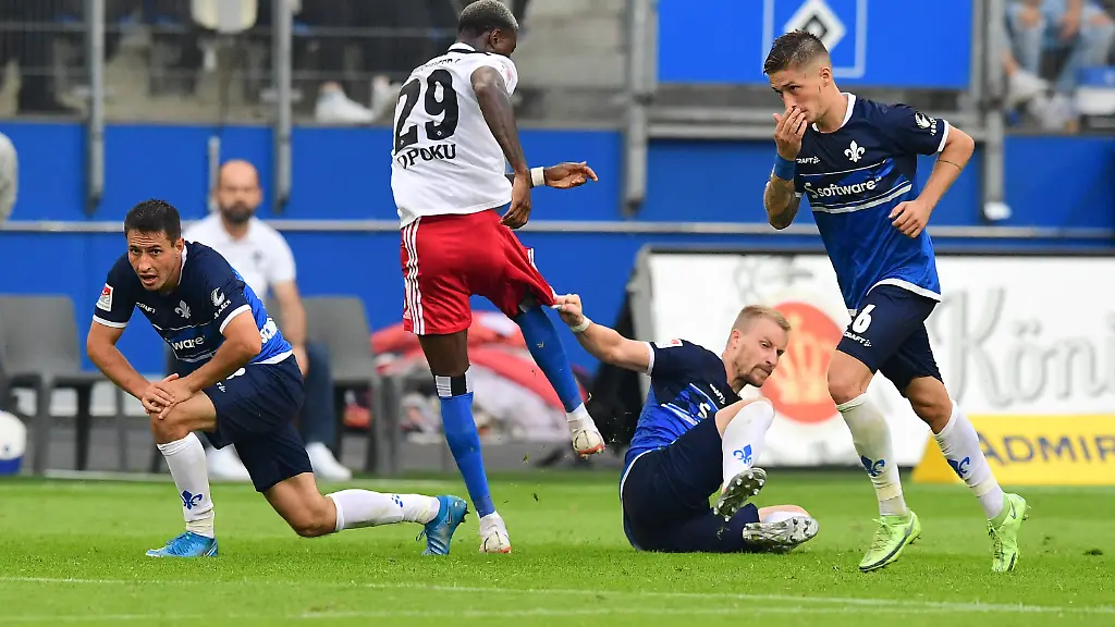 Der Hamburger SV verliert das Spitzenspiel des 5. Spieltags der 2. Fußball-Bundesliga gegen Darmstadt 98 - und muss sich doppelt ärgern: Über die Heimpleite und eine heftige Tätlichkeit. Nach dem Anschlusstreffer fliegt dann auch noch der Torschütze vom Platz. Aufsteiger Magdeburg geht in der unteren Tabellenhälfte gegen Hannover 96 unter.