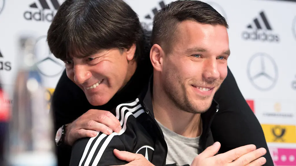 128 von den dann 130 Partien Podolskis haben die beiden gemeinsam bestritten. Das seien so viele wie mit keinem anderen Spieler. Deshalb darf "der Lukas" als einziger Spieler den Bundestrainer auch Jogi nennen. Dabei war neben dem Spielerischen auch der Mensch wichtig, betont Löw immer wieder: "Er wird uns fehlen." Und: "Ihm fliegen die Herzen zu und das zu Recht. Er hat eine unglaubliche Empathie und einen Respekt für die Menschen. Jedem hat er das Gefühl gegeben, dass er wichtig ist."