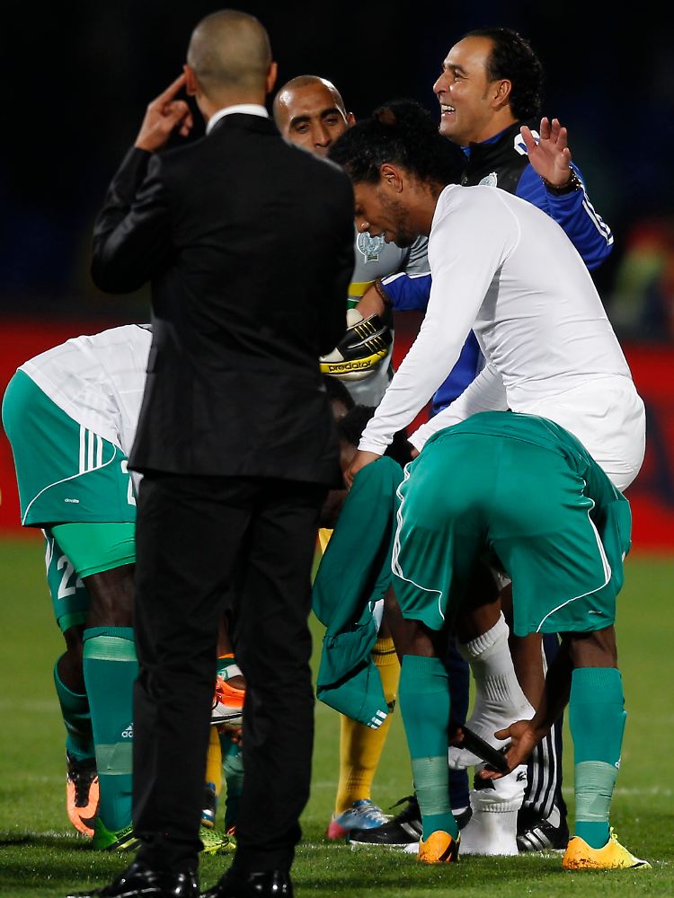 Es waren turbulente Szenen, die sich im Stade de M arrakech am Mittwochabend abspielten. Nach dem ebenso überraschenden wie verdienten 3:1-Sieg der Fußballer aus Casablanca gegen Atletico Mineiro im Halbfinale der Klub-WM stürmten die Kicker von Raja in Richtung Ronaldinho. Sie tätschelten ihn, küssten ihn und fielen auf die Knie. Zu guter Letzt schnürten sie ihm die Schuhe auf und nahmen sie mit. Es war ein Bild mit Symbolcharakter. Ronaldinho, der Weltfußballer, Weltmeister, Champions-League-Sieger von einst, ließ es über sich ergehen. Genau, wie er auch die Niederlage hatte über sich ergehen lassen.