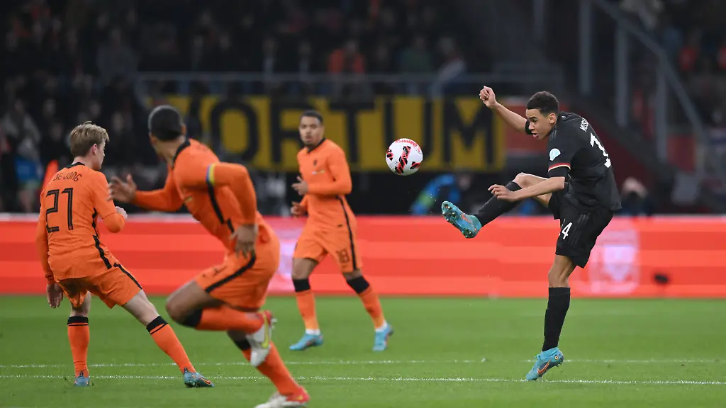 Zwei Teams im Umbruch nach einer enttäuschenden Europameisterschaft. Zwei Teams, die am Ende des Jahres um den WM-Titel mitspielen wollen und sich nun in der Amsterdamer Johan-Cruyff-Arena nur wenige Tage vor der Gruppenauslosung für die Wüsten-Weltmeisterschaft gegenüberstanden. Auf der einen Seite die Gastgeber, die von Louis van Gaal trainierte Nummer zehn der Weltrangliste aus den Niederlanden, und auf der anderen Seite die unter Hansi Flick bislang so überzeugend auftretende DFB-Elf, die mit acht Siegen in Folge ins Spiel ging. Das 45. "Derby gegen Holland", wie Thomas Müller es nannte, versprach eine Menge. Und es ging sogar noch um was: Der Sieger der Partie durfte darauf hoffen, als Gruppenkopf in die WM-Auslosung zu gehen. Unter bestimmten, zumindest für die DFB-Elf nahezu unmöglichen Bedingungen.
