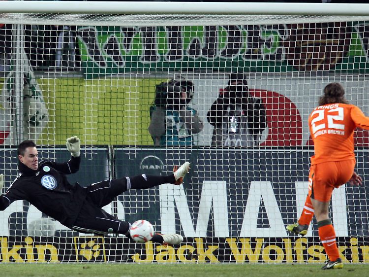 Bremen und Wolfsburg erzielten hingegen selbst unbedrängt aus elf Metern keinen Treffer. Zunächst hatte "Wölfe"-Schlussmann Diego Benaglio einen Strafstoß von Torsten Frings (74.) an die Latte gelenkt, drei Minuten später donnerte Edin Dzeko seinen Elfmeter über das Bremer Tor. Nach dem müden torlosen Unentschieden, in dem auch Diego beim ersten Auftritt mit Wolfsburg bei seinem früheren Club Werder nicht glänzen konnte, bleiben beide Krisen-Nordclubs im Mittelfeld der Tabelle.