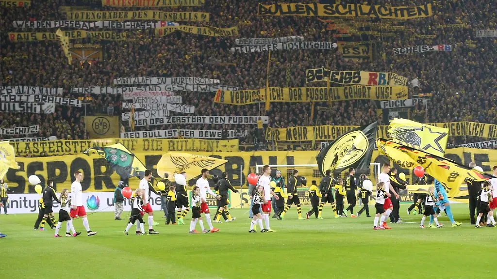 BVB-Anhänger hatten schon vor dem Spiel in der ganzen Stadt Schmähplakate angebracht und auch im Stadion viele beleidigende Banner gegen das "Kunstprodukt" RB Leipzig gezeigt. Einige enthielten Aufrufe zur Gewalt wie beispielsweise zum Werfen von Pflastersteinen. Ein besonders geschmackloses Transparent richtete sich gegen RB-Sportdirektor Ralf Rangnick: "Burnout-Ralle, häng Dich auf!" Rangnick war 2011 als Trainer von Schalke 04 wegen psychischer Probleme zurückgetreten.