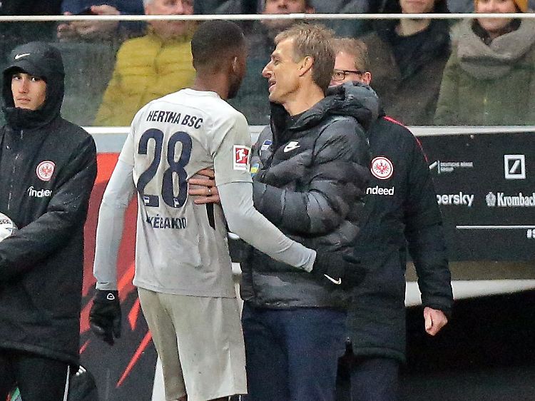 "Die Jungs sind voller Energie und voller Tatendrang", hatte Klinsmann kurz vor dem Anpfiff noch bei DAZN gesagt. Die Berliner zeigten tatsächlich vielversprechende Ansätze und standen vor allem defensiv deutlich sicherer als gegen Dortmund, als es nach 20 Minuten schon 0:2 gestanden hatte. Die Eintracht war zwar spielbestimmend und mit mehr Ballbesitz und kam zu Chancen durch Touré (20.), Djibril Sow (21.) und Hinteregger (28.), doch das Tor fiel auf der Gegenseite. Nach feiner Kombination über Marvin Plattenhardt und Grujic drang Lukebakio auf der linken Seite in den Strafraum ein und überwand Frankfurts Keeper Frederik Rönnow.