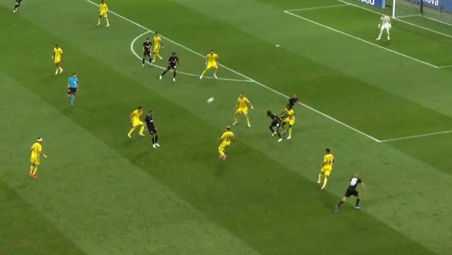 Vor 46.000 Zuschauern erzielten Joker Jessic Ngankam in der 79. Minute und Ellyes Skhiri in der 86. Minute die Tore für die Hessen, die 2022 die Europa League gewonnen hatten und in der Vorsaison erstmals in der Champions League dabei waren. In Abwesenheit von Kolo Muani, der mit einem Trainingsausstand seinen Wechsel zum französischen Topklub Paris Saint-Germain erzwingen will, durfte Paxten Aaronson von Beginn an in der Offensive ran. Die Hausherren dominierten die Partie, konnten sich zunächst aber kaum Chancen erarbeiten. Und als der Ball Mitte der ersten Halbzeit dann endlich im Netz lag, stand der Schütze Omar Marmoush zuvor im Abseits.