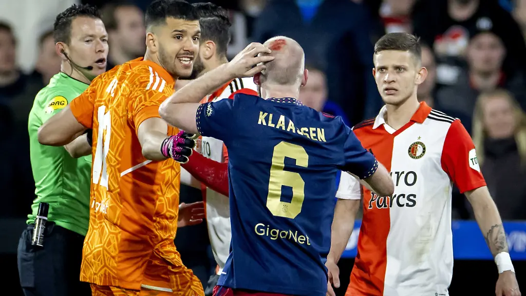 Der niederländische Fußball-Verband KNVB hat die Zwischenfälle im Pokal-Halbfinale von Ajax Amsterdam bei Feyenoord Rotterdam verurteilt und Ermittlungen angekündigt. Der ehemalige Bundesliga-Profi Davy Klaassen war beim 2:1 von Ajax am Mittwochabend von einem Gegenstand, der von den Zuschauerrängen geworfen worden war, am Hinterkopf getroffen worden und musste behandelt werden. Die Partie war für rund eine halbe Stunde unterbrochen.