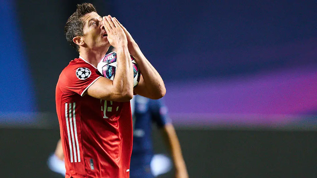 Stürmer der Saison: Robert Lewandowski duelliert sich hier mit Kylian Mbappé und Neymar von Paris St. Germain. Serge Gnabry landet wie schon im Mittelfeld-Voting auf Rang vier, den fünften Platz teilt der im Winter von Salzburg nach Dortmund gewechselte Erling Haaland mit Barcelonas Superstar Lionel Messi, Thomas Müller ist Siebter.