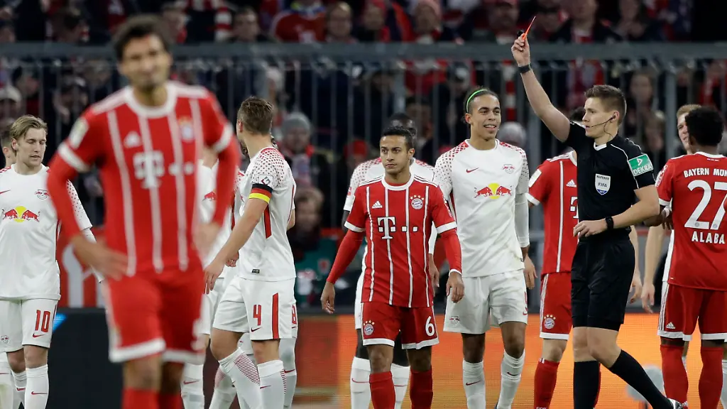 Bei den Bayern machten sich die drei Startelf-Änderungen von Jupp Heynckes bezahlt. Neben dem starken James bildeten Javi Martínez und Sebastian Rudy ein überzeugendes Mittelfeld-Duo. Rudy war auch der Initiator für den Platzverweis. Nach seinem Pass in die RB-Deckung kreuzte Orban den Laufweg von Robben, der sofort zu Boden ging. Schiedsrichter Siebert entschied zunächst auf Gelb, nach Videobeweis dann aber auf Rot und sorgte früh für einen heftigen Dämpfer bei den Gästen.