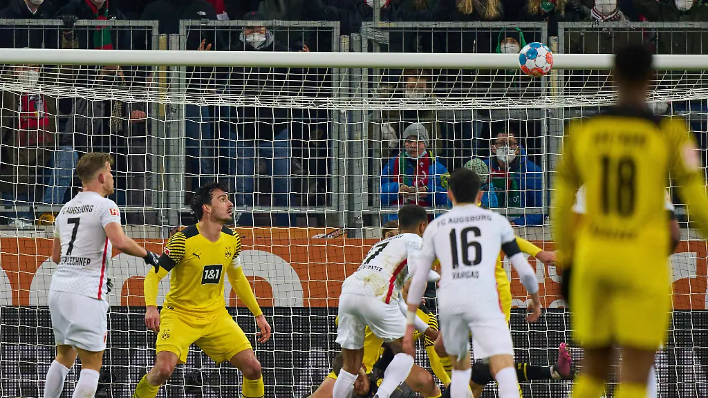 Borussia Dortmund muss die Verfolgung von Tabellenführer Bayern München wohl endgültig abblasen. Die stark ersatzgeschwächte, aber lange Zeit überzeugende Mannschaft von Trainer Marco Rose kassierte beim FC Augsburg durch Noah Sarenren Bazee (78.) einen späten Ausgleichstreffer zum 1:1 (1:0) und hat nun acht Punkte Rückstand auf den deutschen Serienmeister. Der BVB war durch den guten Thorgan Hazard Hazard vor 15.330 Zuschauern in Führung gegangen (35.), versäumte es aber vor allem zu Beginn der zweiten Halbzeit, den Vorsprung auszubauen - hinzu kamen ein Latten- und ein Pfostentreffer. Dortmund wird sich nach dem Scheitern in allen Pokalwettbewerben nun darauf beschränken müssen, seinen Platz in der Champions League abzusichern.