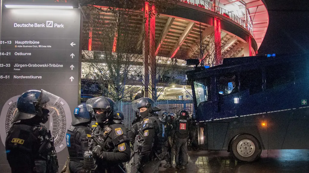 Die vom Ordnungsdienst zu Hilfe gerufenen Polizisten seien bei ihrem Eintreffen vor Ort von Eintracht-Fans massiv attackiert worden. "Unter anderem kam es zu einer Vielzahl von gezielten Würfen mit Flaschen, Pyrotechnik und schweren Eisengittern", hieß es im Polizeibericht. Einen eigenen Post in den sozialen Medien vom Samstag korrigierte die Polizei in der Mitteilung. "Der zunächst durch die Polizei Frankfurt über den Kurznachrichtendienst X veröffentlichte Hinweis, es handele sich bei den Beteiligten der Auseinandersetzung vor Block 40 um rivalisierende Fangruppen, basierte in der dynamischen Einsatzsituation auf einer falschen Bewertung des Geschehens und wird hiermit revidiert", hieß es.