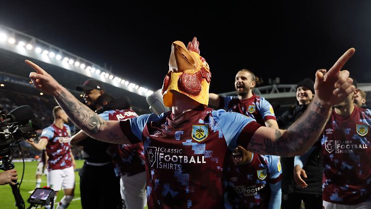 Das Huhn ist wieder da. Burnley feiert den Aufstieg im April 2023.