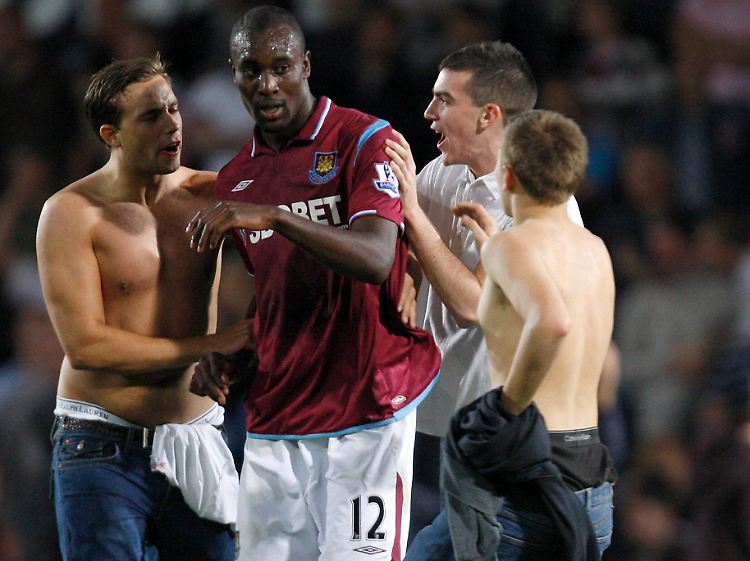 An der Randale in und um das Stadion des Premier-League-Clubs West Ham seien Hunderte Fans beteiligt gewesen. Es habe sich um "geplante" Ausschreitungen gehandelt, bei denen auch Flaschen und Steine flogen. Während des Spiels und nach dem Schlusspfiff stürmten massenweise Fans auf das Spielfeld im Stadion Upton Park. Auch nach dem Spiel gab es Zusammenstöße mit der Polizei.
