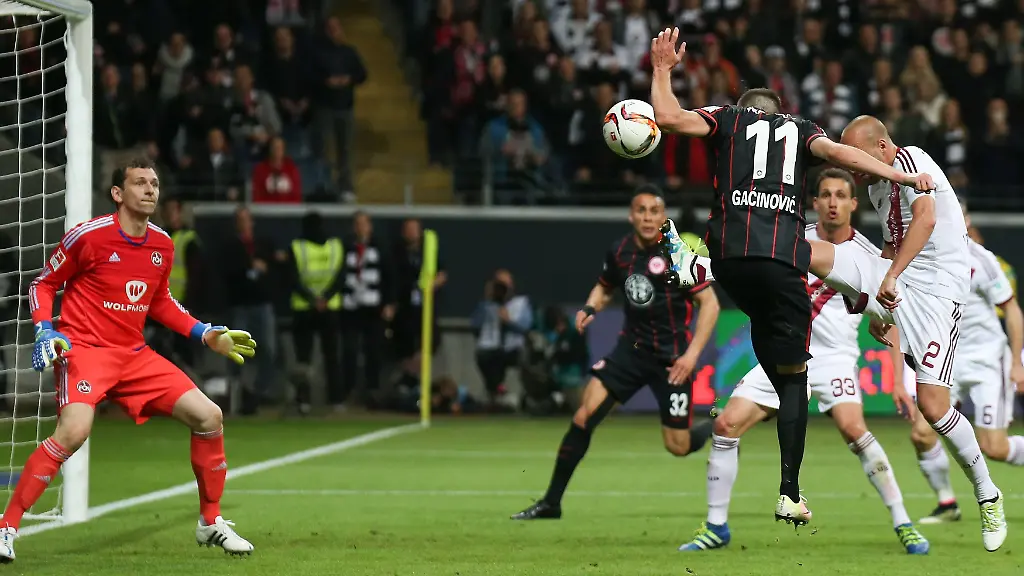 Und angetrieben von Russ starteten die Frankfurter druckvoll. Schon in den ersten zehn Minuten erspielten sich die Gastgeber drei Eckbälle, die Gäste wurden weit in die eigene Hälfte gedrängt. Neben Russ stand auch Torjäger Alexander Meier in der Anfangself. Der Angreifer, der wegen einer Knieverletzung seit Ende Februar keine Partie mehr bestritten hatte, spielte hinter der einzigen Spitze Haris Seferovic und sollte den Nürnbergern allein durch seine Anwesenheit Furcht einflößen.