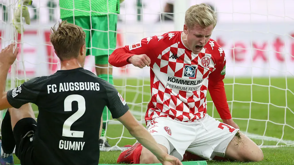 Mainz startete aggressiv - und führte nach einer Viertelstunde plötzlich 2:0. Bei einer flachen Hereingabe von Silvan Widmer patzte der Augsburger Abwehrspieler Robert Gumny und trat am Ball vorbei. Der hinter ihm lauernde Onisiwo nahm das Geschenk an, legte sich den Ball zurecht und ließ FCA-Torwart Rafal Gikiewicz keine Abwehrchance.