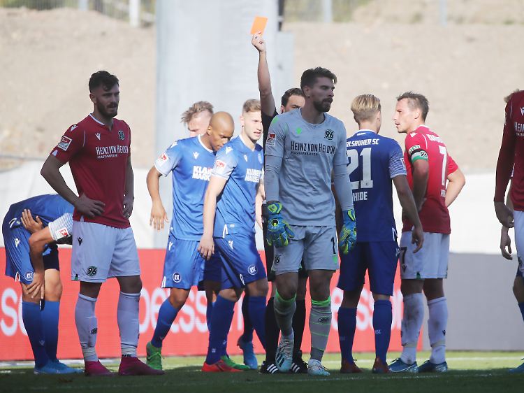 Bundesliga-Absteiger Hannover 96 bleibt im grauen Mittelmaß hängen. Die Niedersachsen kamen beim Aufsteiger Karlsruher SC nicht über ein 3:3 (2:1) hinaus und belegen mit 13 Punkten vorerst nur Rang 13. Vor 13 300 Zuschauern trafen Hendrik Weydandt (6. Minute/90.+4) sowie Marvin Ducksch (44./Foulelfmeter) für Hannover. Marvin Wanitzek (9./Handelfmeter) und Daniel Gordon mit einem Doppelpack (77./90.+5) glichen dreimal für die Hausherren aus. In der dramatischen Nachspielzeit sah 96-Torwart Ron-Robert Zieler nach dem 3:3 wegen wiederholten Foulspiels die Gelb-Rote Karte.