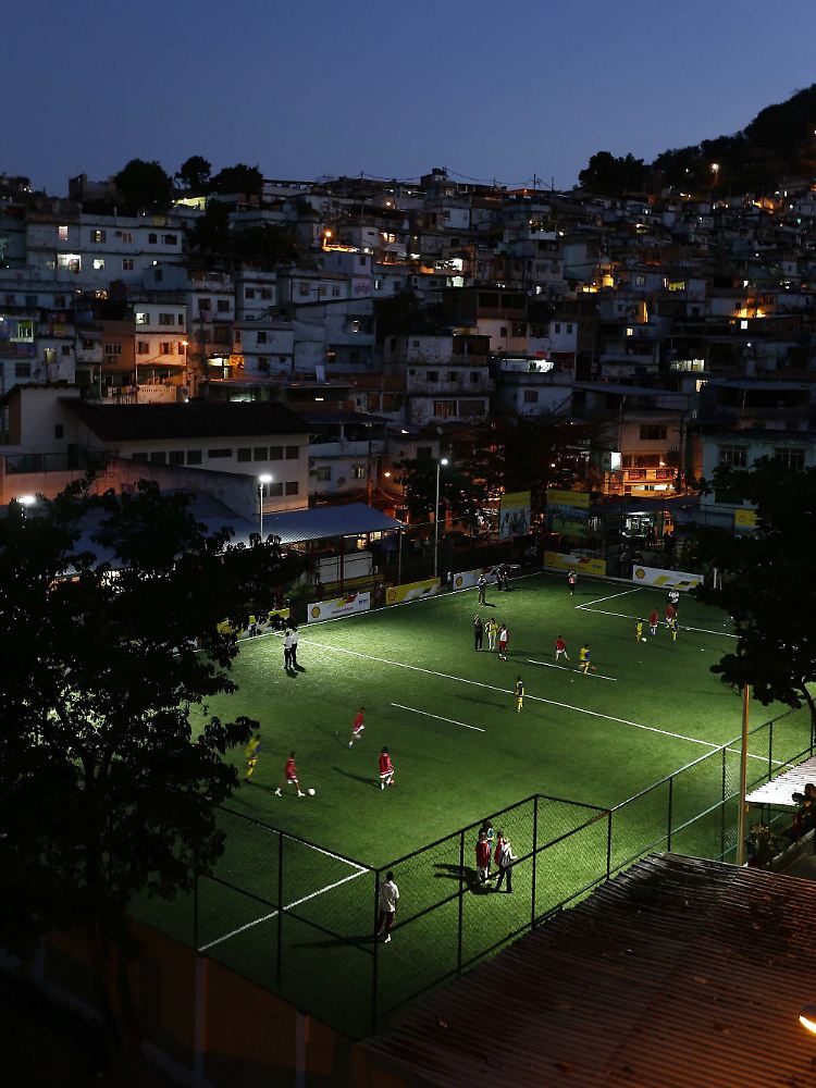 In Rio de Janeiro ist der erste Fußballplatz der Welt eingeweiht worden, der mittels der Energie der Spieler beleuchtet wird: Eine neue Technologie setzt die Schritte der Fußballer in Licht um. Dafür wurden unter dem Rasen auf dem Feld in der Favela Mineira 200 Platten aus recyceltem Material verlegt, die die kinetische Energie der Spieler sammeln. Diese wird dann in Licht umgewandelt. Bei der Einweihung des neuen Systems am Mittwochabend gab sich auch Fußballlegende Pelé die Ehre.