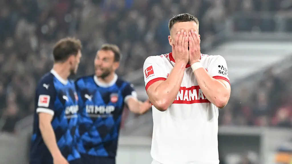 Ein Last-Minute-Gegentor gegen den 1. FC Heidenheim hat die Ergebniskrise des VfB Stuttgart verschärft. Der DFB-Pokal-Finalist verlor gegen den stark abstiegsgefährdeten württembergischen Rivalen mit 0:1 (0:0) und musste damit die sechste Heimpleite in der Fußball-Bundesliga nacheinander hinnehmen. Mathias Honsak schockte mit seinem Tor in der 89. Minute die Gastgeber von Trainer Sebastian Hoeneß.
