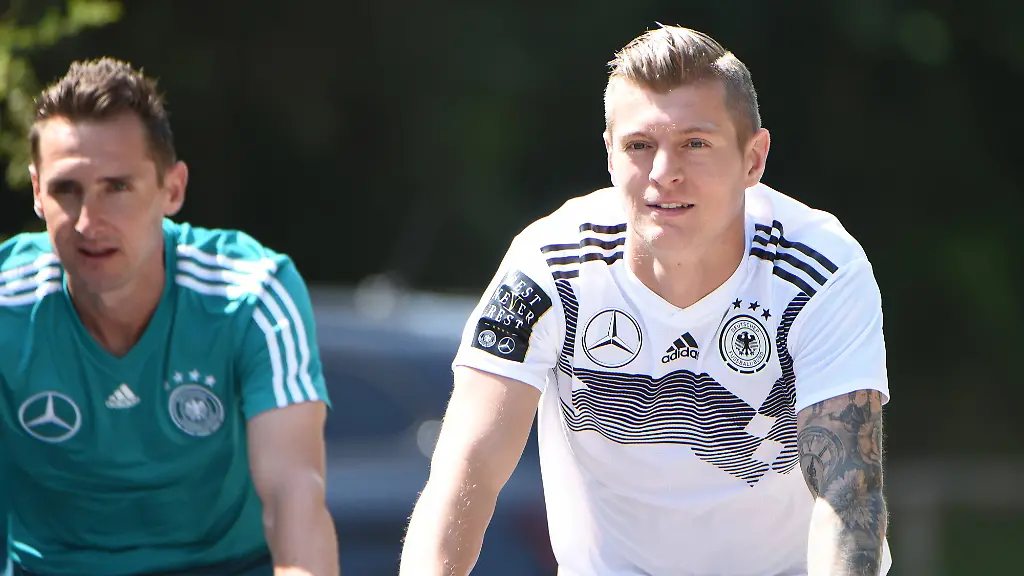 Klose und Kroos spielten einst gemeinsam beim FC Bayern. Kroos habe sich im Lauf der Zeit zu einer "Ballmaschine vom Allerfeinsten" entwickelt, so der frühere Stürmer. "Wie Toni zudem das Spiel lesen kann, ist ein Wahnsinn." Der 34-Jährige sei nach wie vor ein "großartiger Spieler". Das habe er auch bei seinem Nationalelf-Comeback im März gezeigt.