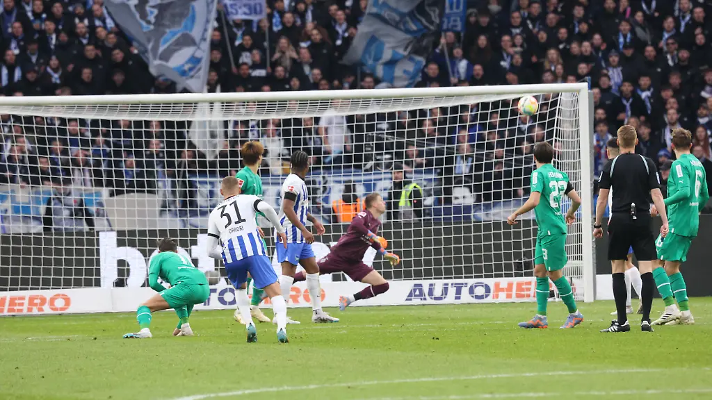 Vor Dardais Sonntagsschuss, der auch von Vater und Ex-Hertha-Trainer Pal Dardai auf der Tribüne bejubelt wurde, hatte Jessic Ngankam nach einer halben Stunde die Gäste-Führung durch Nico Elvedi (17.) ausgeglichen. Die eingewechselten Derry Scherhant (90.+1) und Dodi Lukebakio (90.+7/Elfmeter) stellten in einer hektischen Schlussphase vor 40.973 Zuschauern im Olympiastadion den Endstand her.