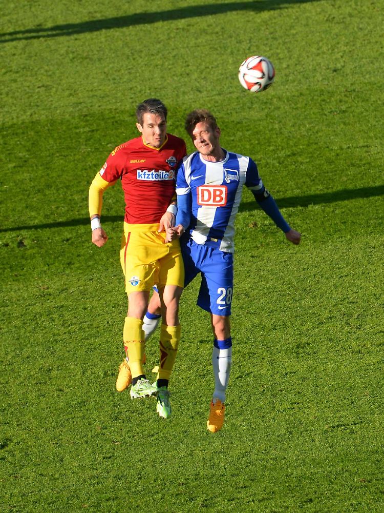 "Wir haben jetzt die Chance, wichtige Meter zu machen. Das wollen wir mit aller Macht", hatte Hertha-Manager Michael Preetz vor der Partie betont. Auf dem Rasen setzten die Akteure diese Forderung aber erst sehr spät um. Nach einer langen Phase ohne jede Höhepunkte wurde Salomon Kalou kurz vor dem Strafraum von Rafael Lopez gefoult. Torhüter Lukas Kruse lenkte den Freistoß von Marvin Plattenhardt noch an die Latte, dann staubte der Schweizer WM-Spieler Stocker ab. Im Gegenzug verhinderte Hertha-Keeper Thomas Kraft den Ausgleich der Gäste. Mario Vrancic tauchte allein vor Kraft auf, schoss dem Berliner Schlussmann aber an den Kopf. Die Gäste erhöhten in den letzten 20 Minuten zwar noch einmal Tempo und Engagement, blieben aber insgesamt viel zu harmlos und dürften in dieser Verfassung nur schwer die Klasse halten.