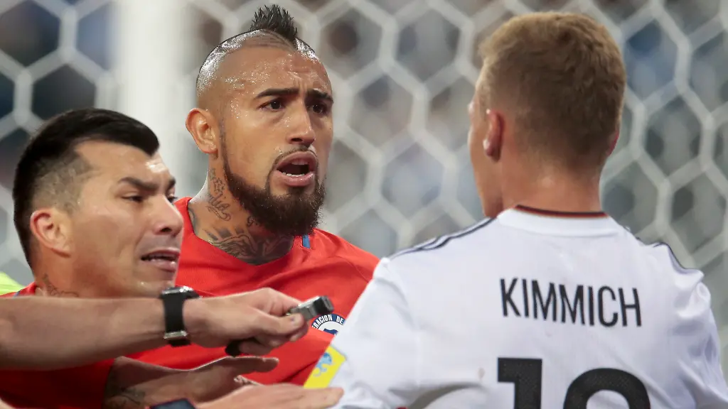 Zuvor hatte sich Kimmich in der emotionalen Szene bereits mit Chiles Torwart Claudio Bravo angelegt und musste sich auch noch Innenverteidiger Gary Medel erwehren, der ihn ebenfalls schubste. Wie Vidal sah Kimmich in der 59. Minute die Gelbe Karte. Direkt im Anschluss verzichteten beide noch auf einen versöhnlichen Handschlag, holten dies aber bei der Siegerehrung nach.